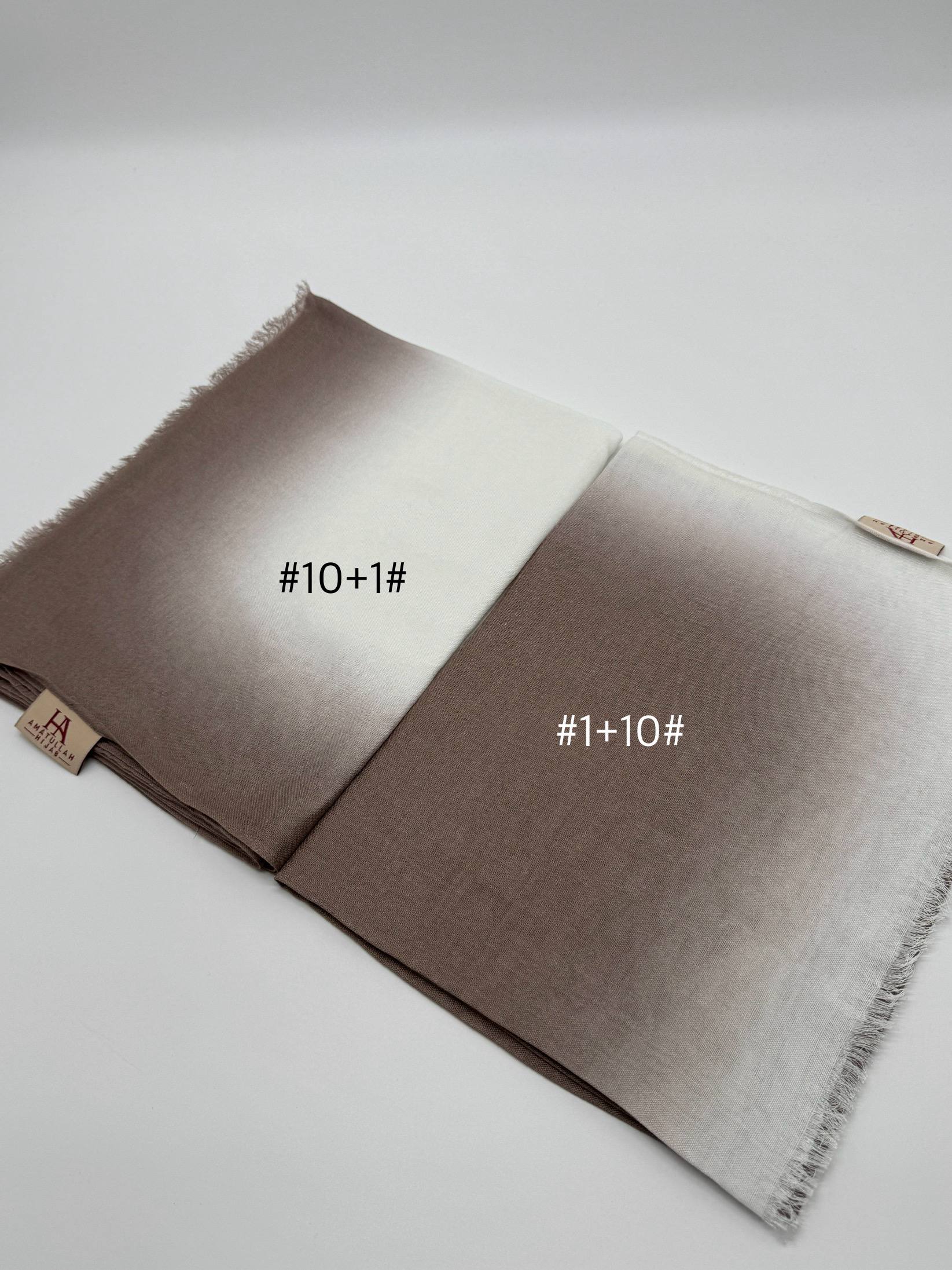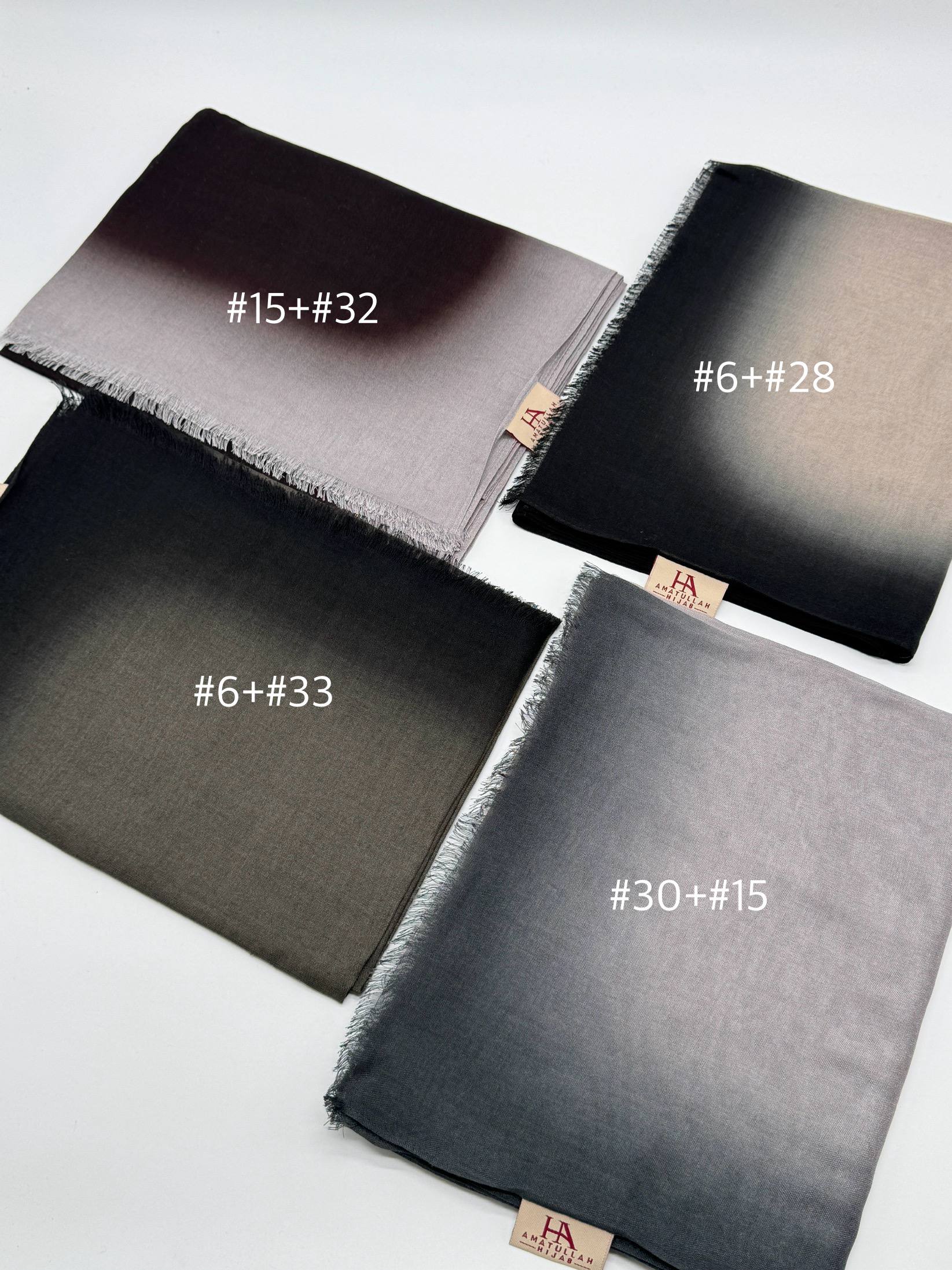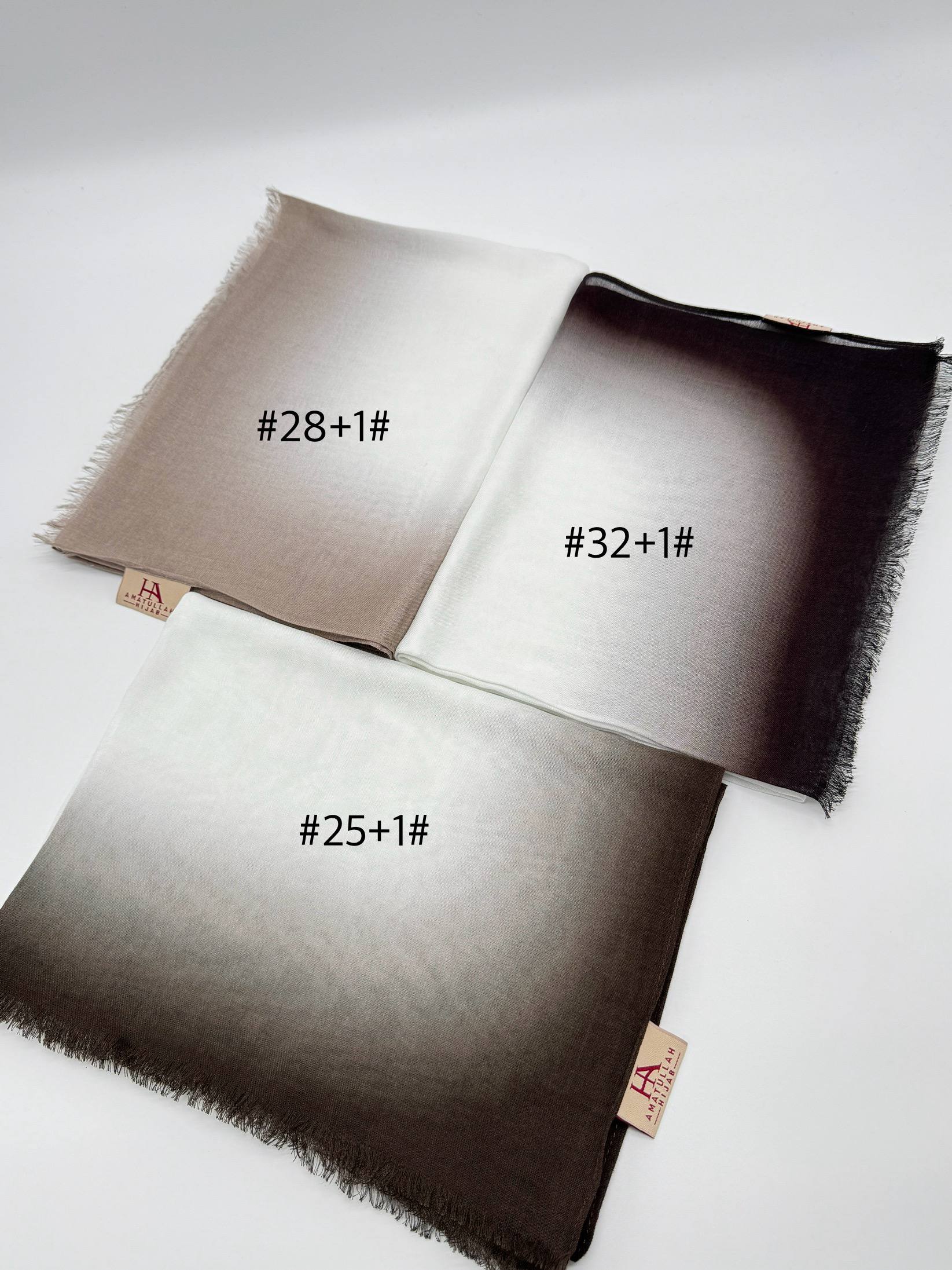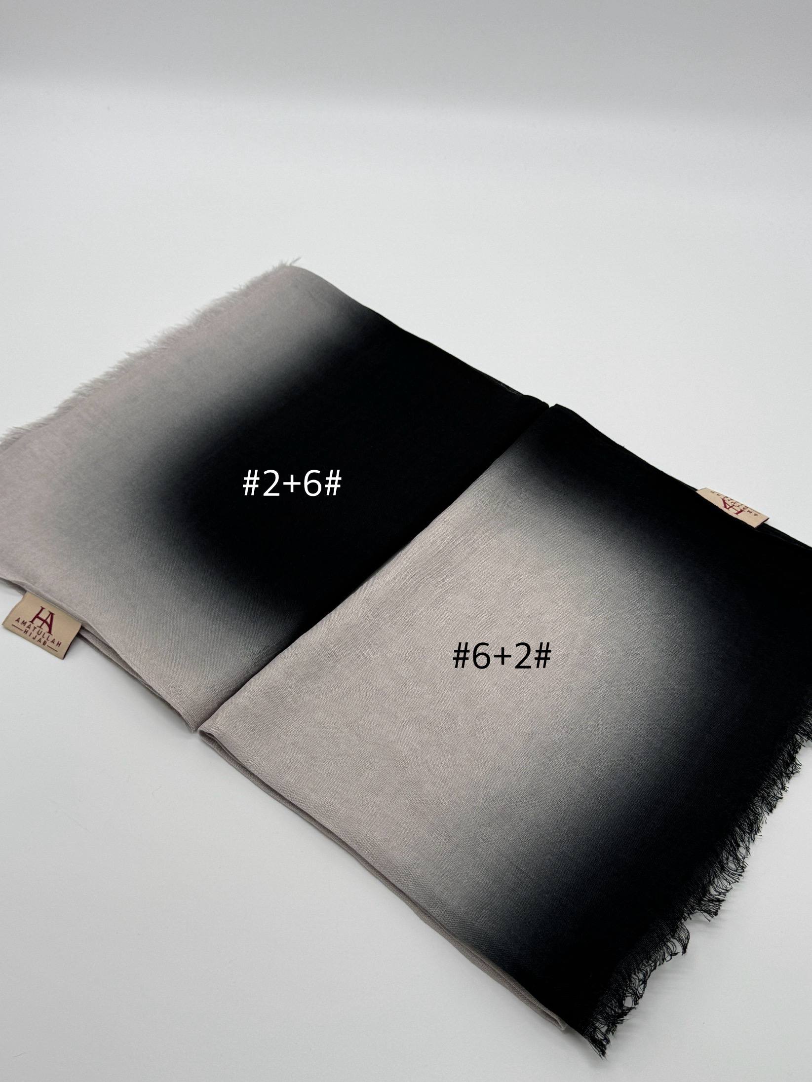 The Gradient Ombre scarf measures 120x70cm and is expertly crafted from premium viscose fabric, providing a smooth, breathable feel. Finished on all four sides, this scarf combines durability with refined elegance. Its subtle color transitions add a sophisticated touch, making it an essential piece for those seeking both quality and style.